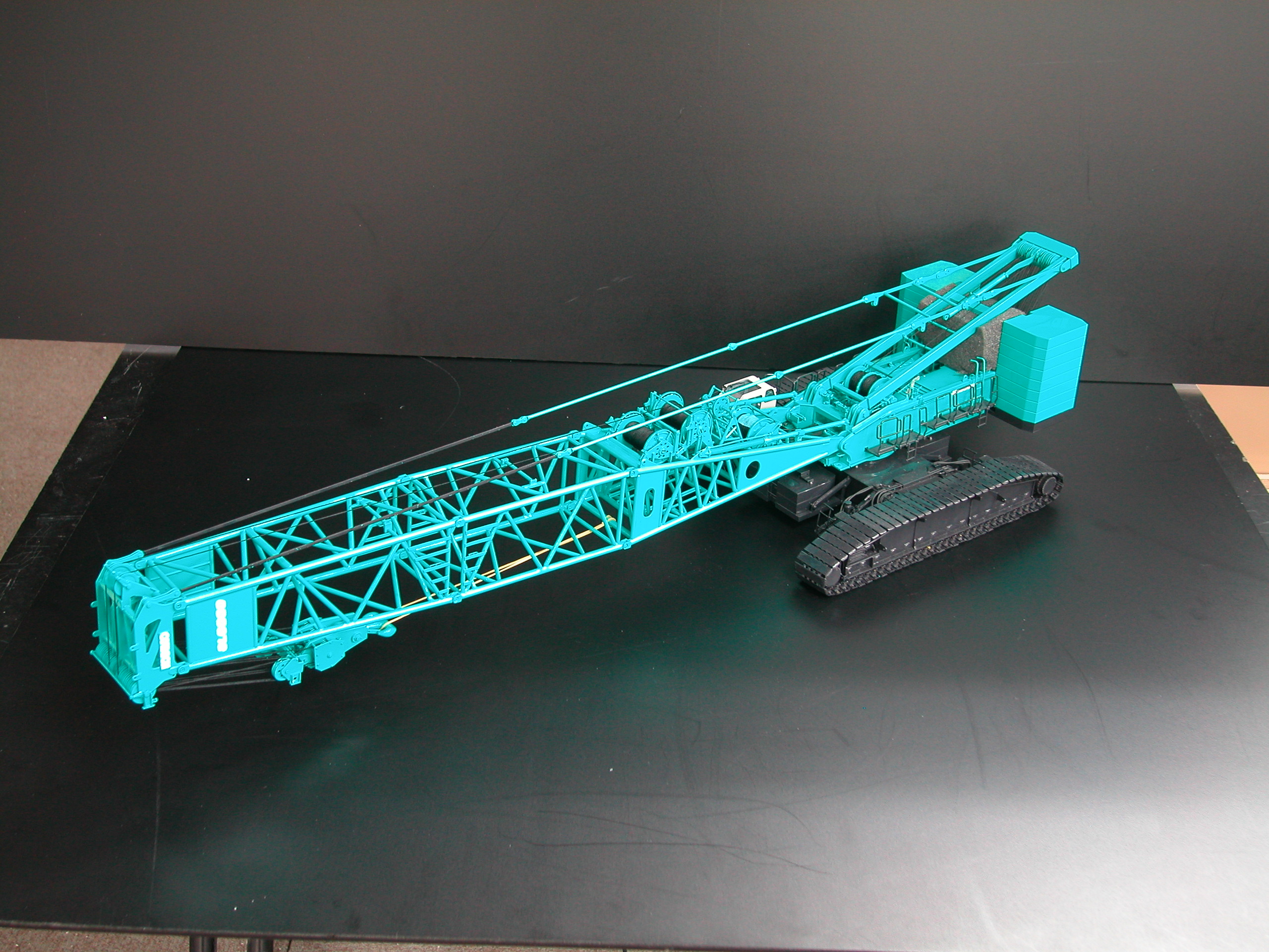 クローラクレーンです。キャタピラは既製品を使用して、クレーン部を製作しています。