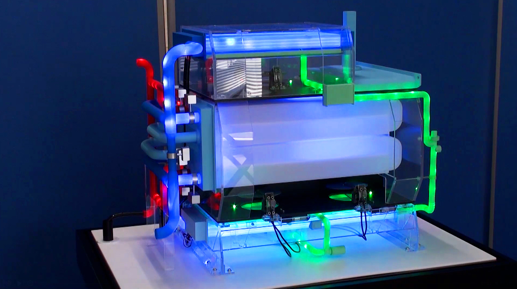 冷凍サイクルをLEDの電飾で表現した模型です。